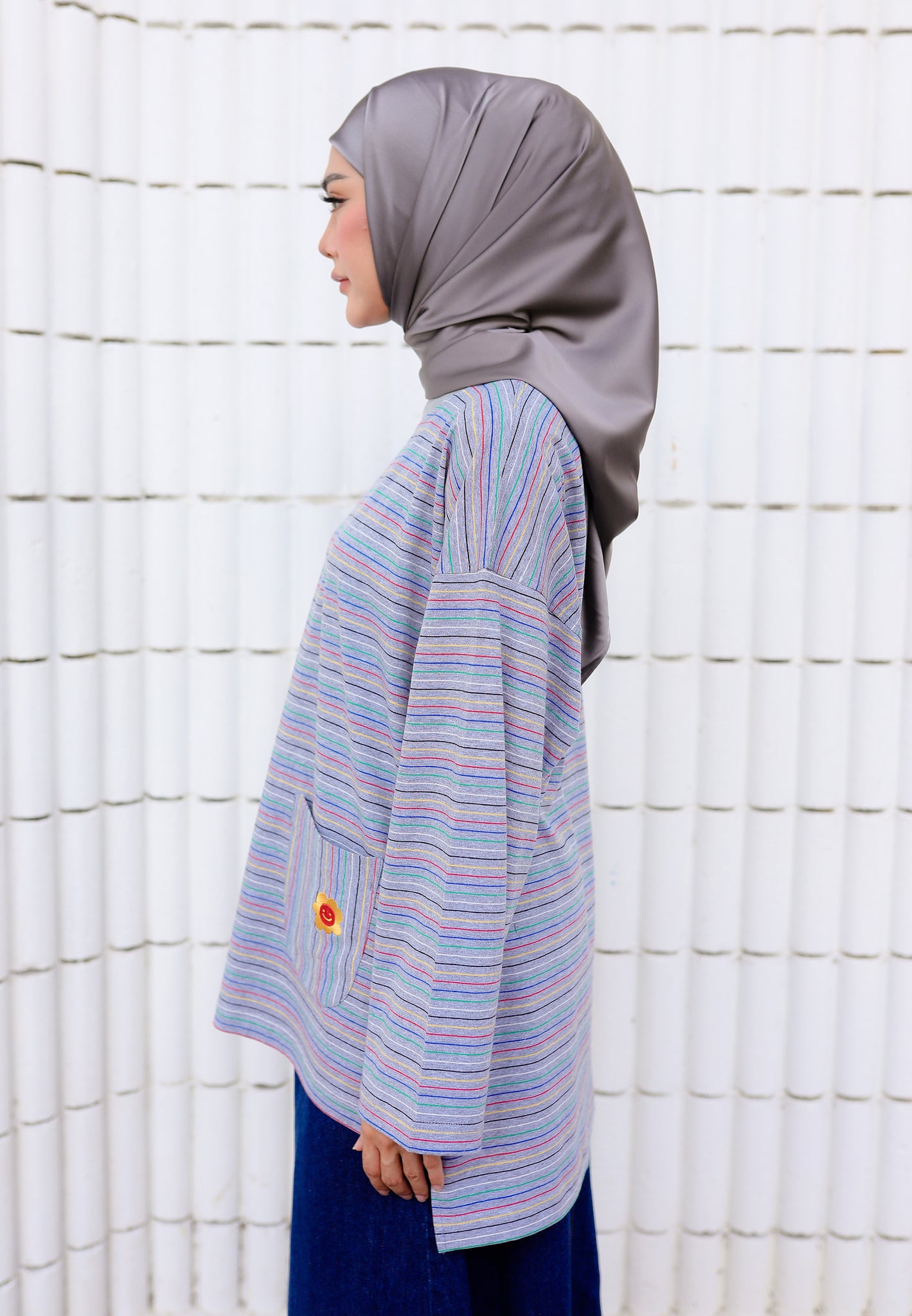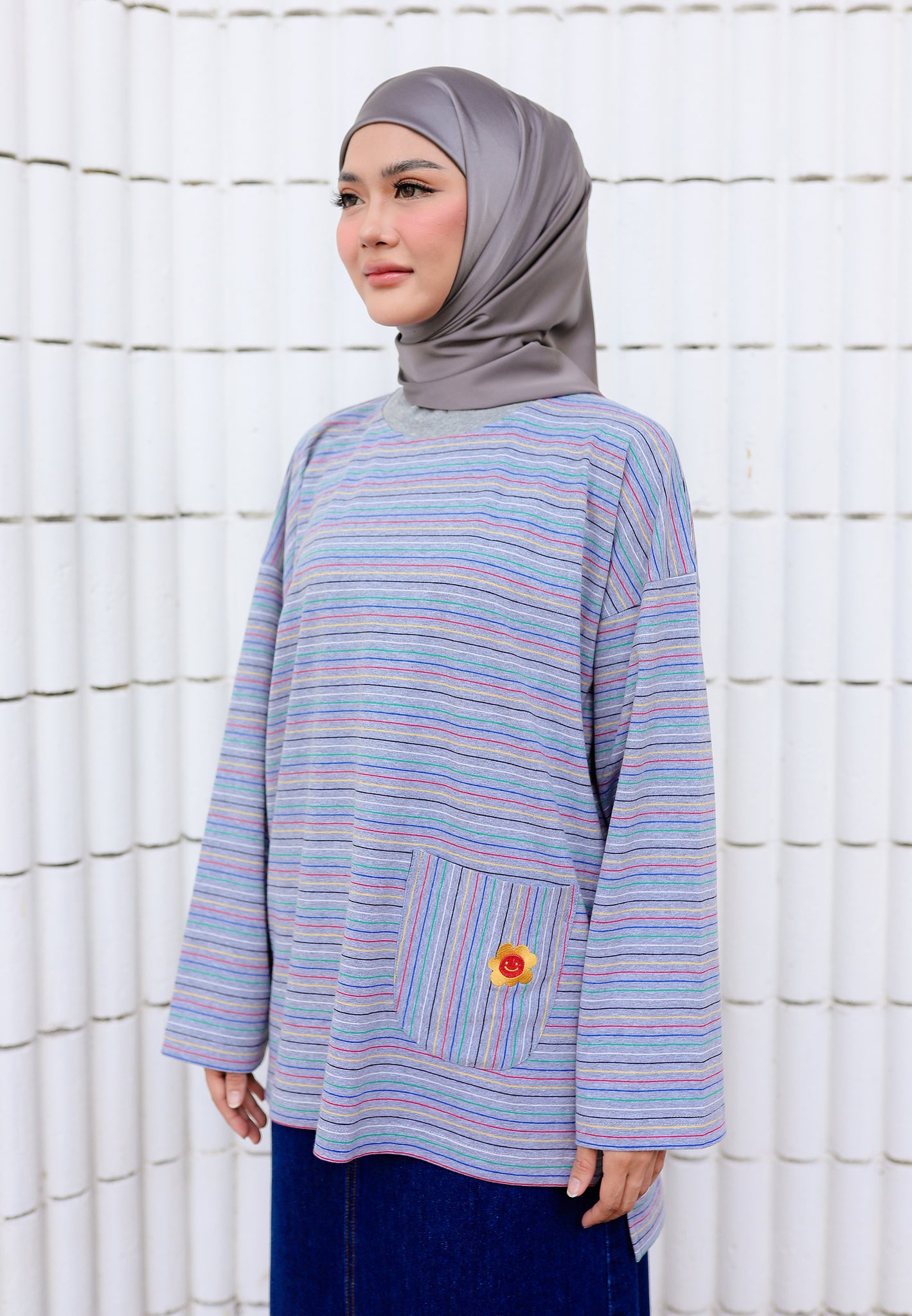 • One front pocket with flower embroidered