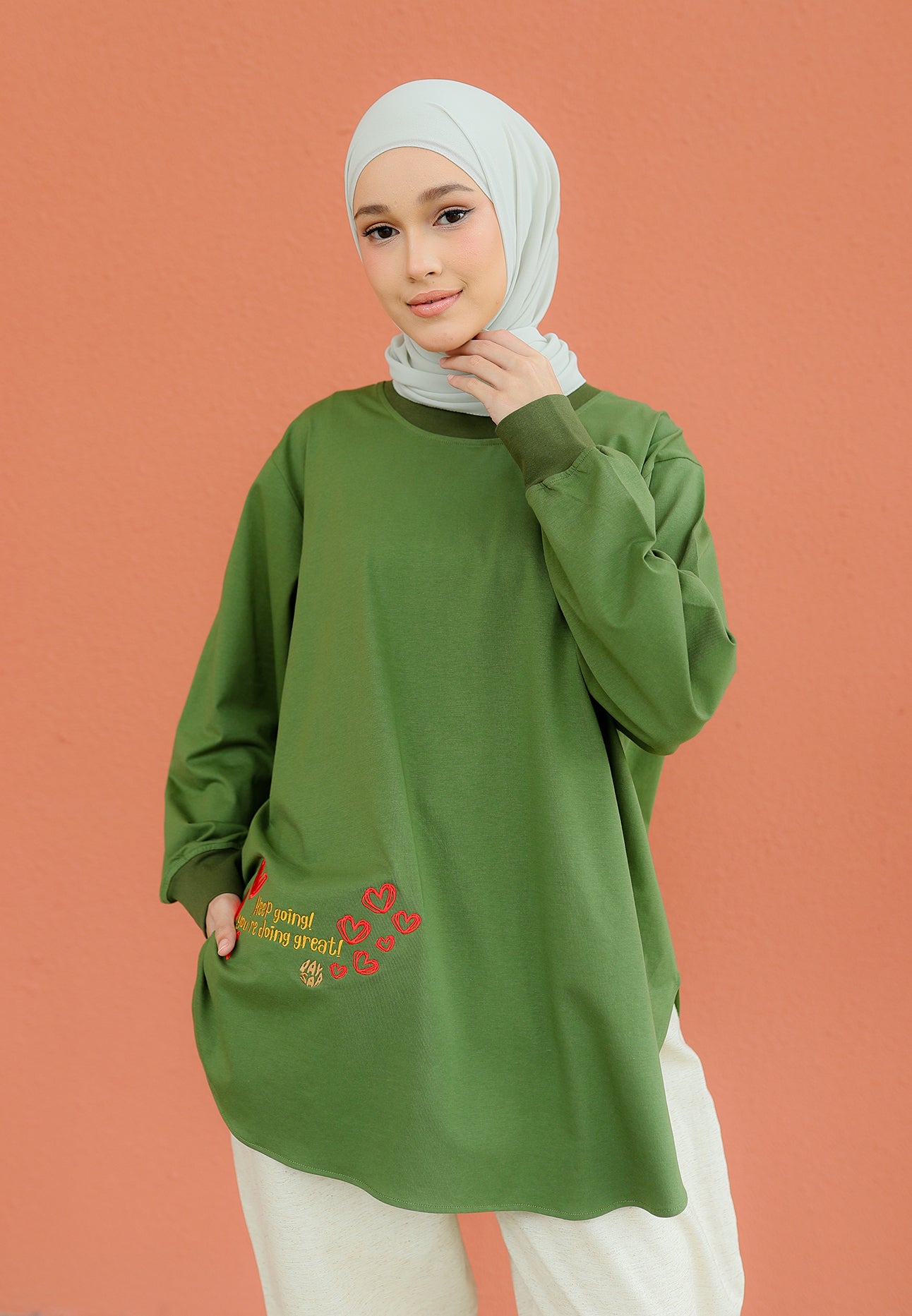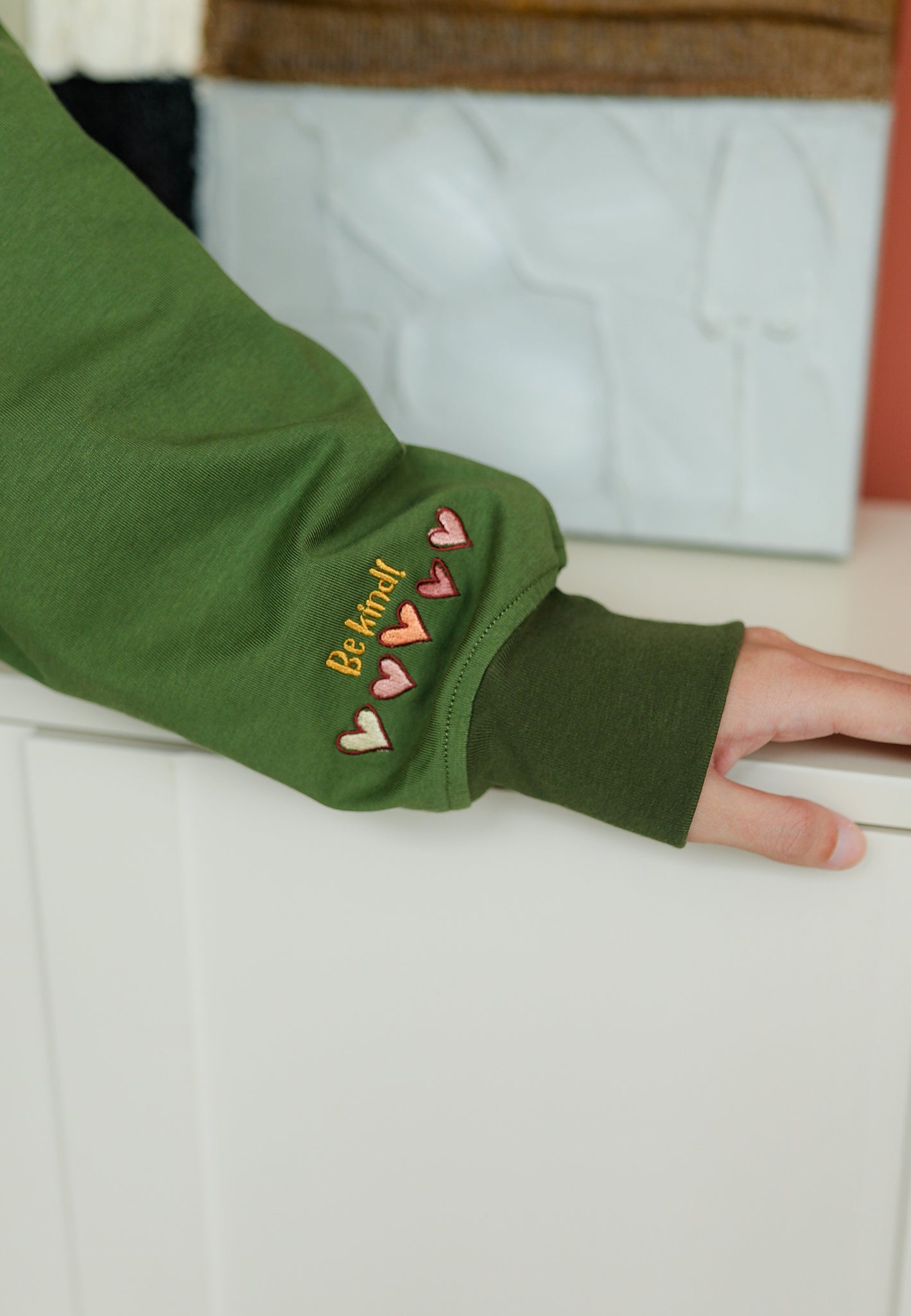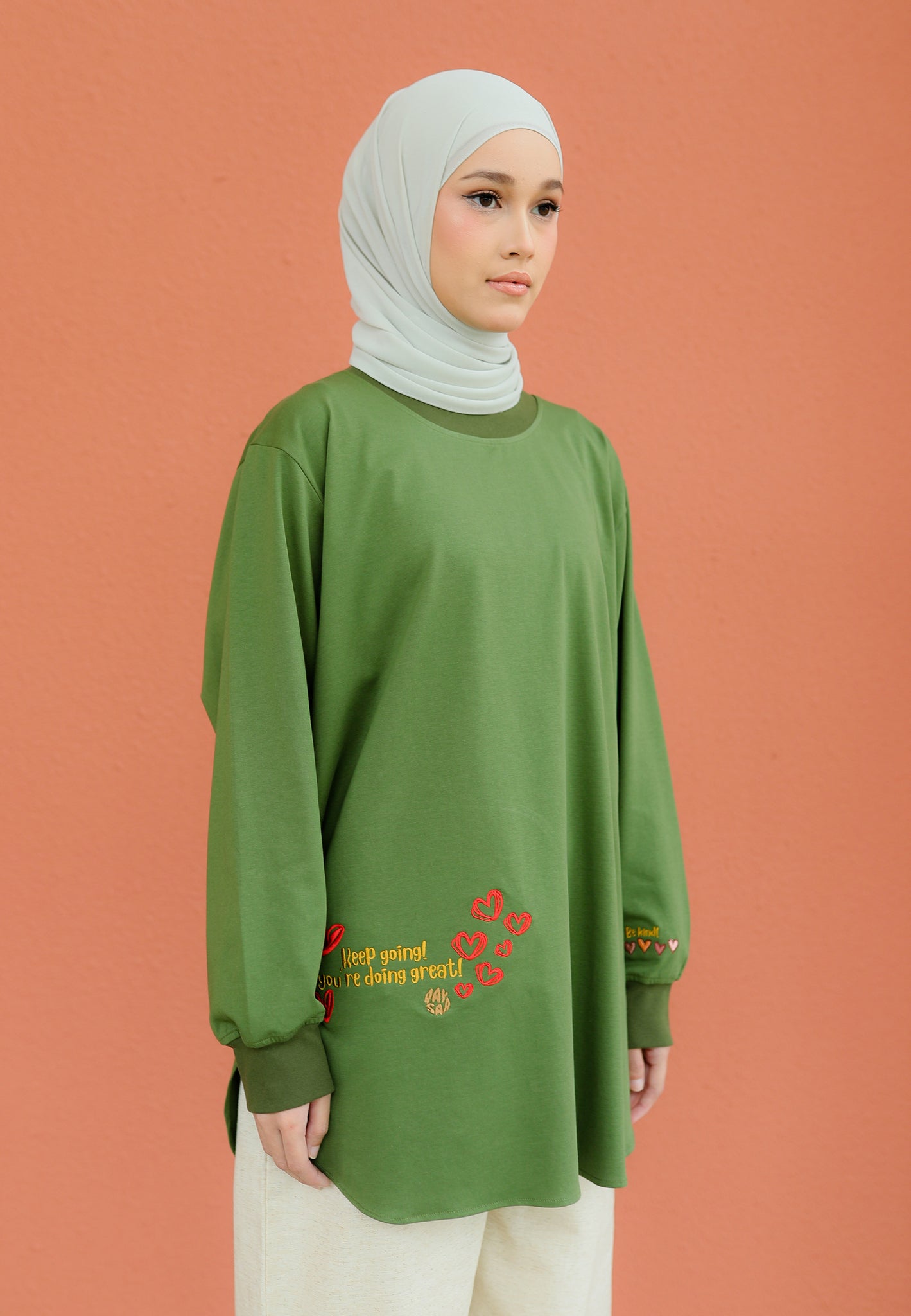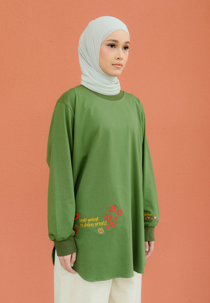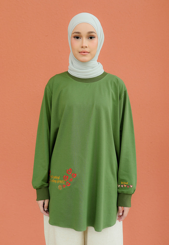 Be Kind Embroidered T-Shirt (Olive Green)