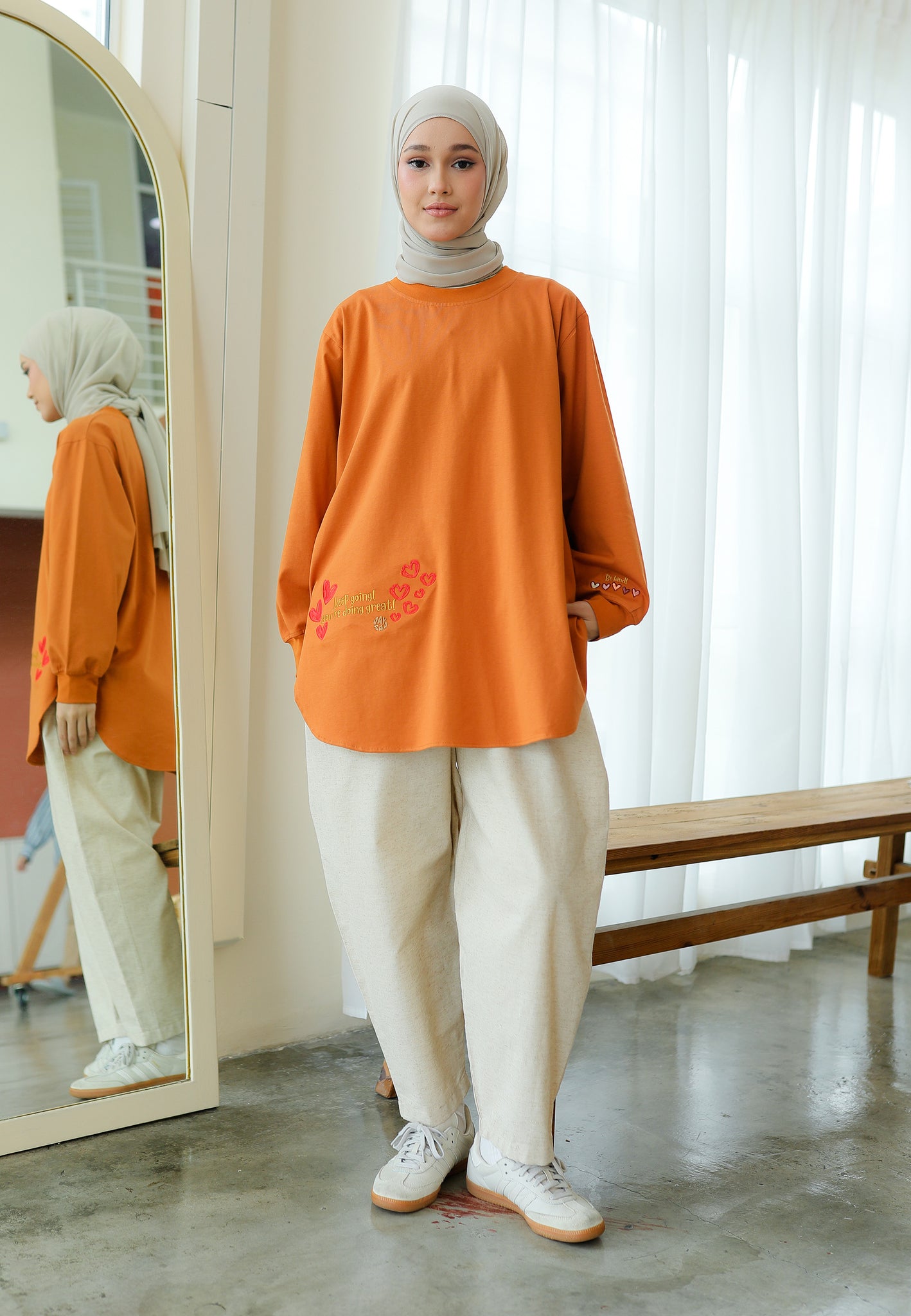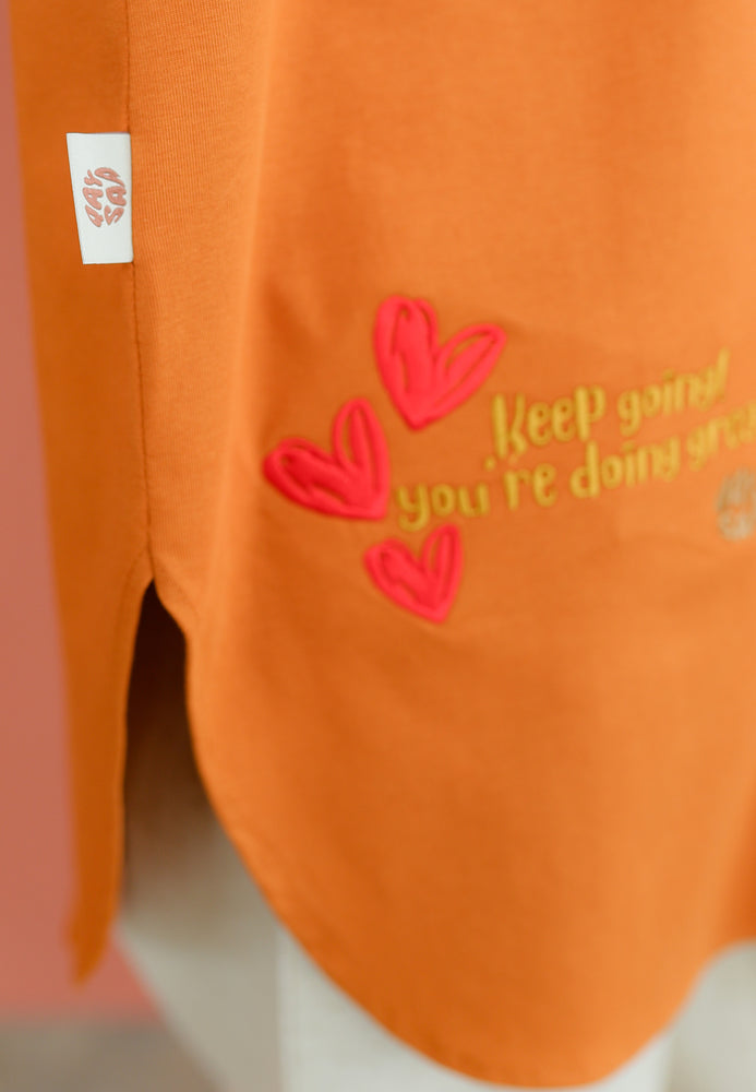 Be Kind Embroidered T-Shirt (Pumpkin)