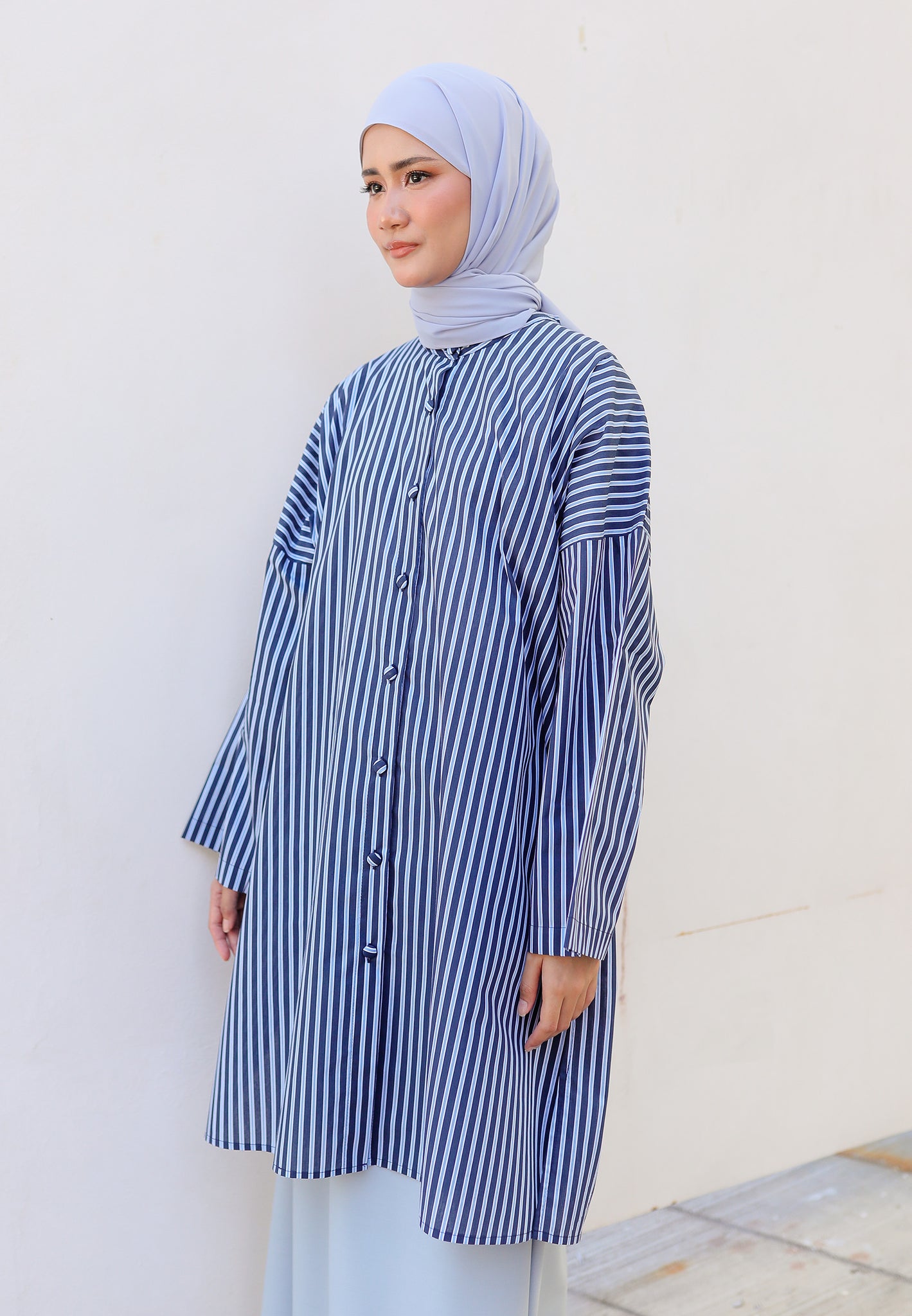 Ibna Printed Tunic (Dark Blue Stripe)