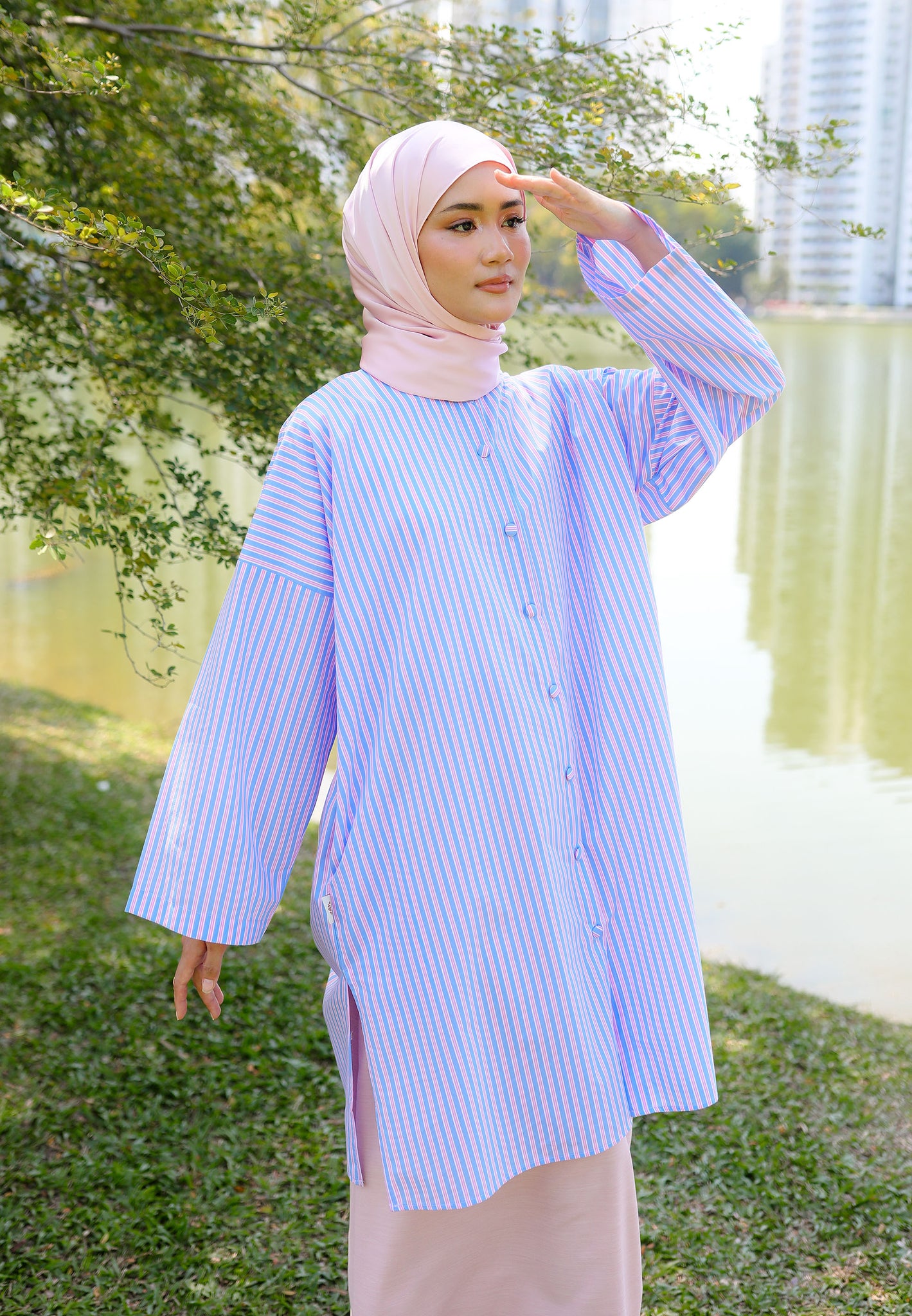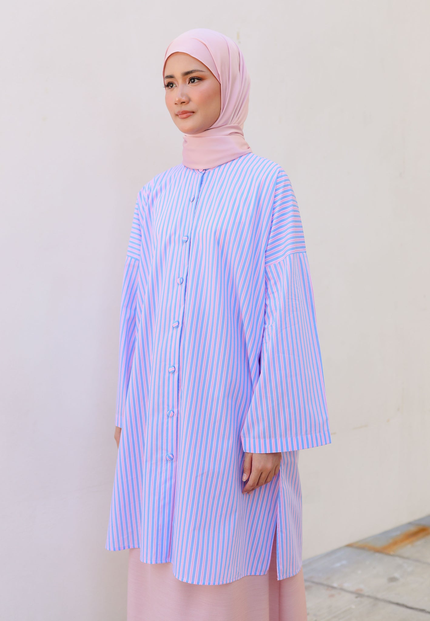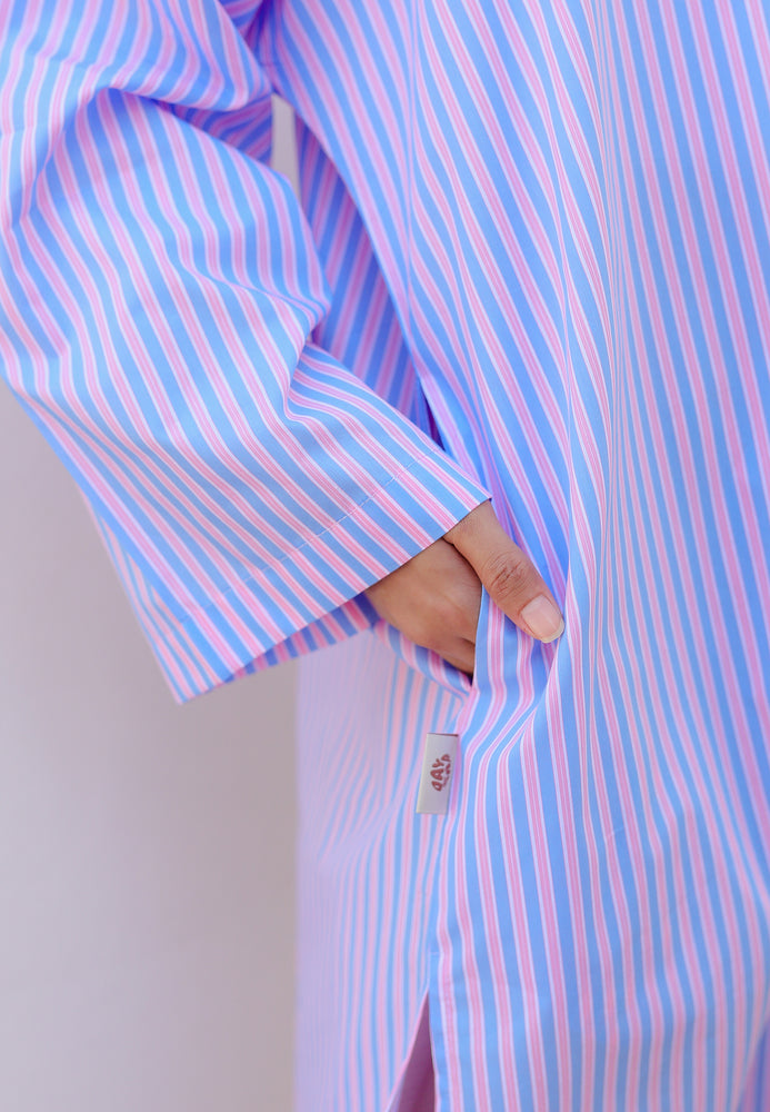 Ibna Printed Tunic (Pink Blue Stripe)