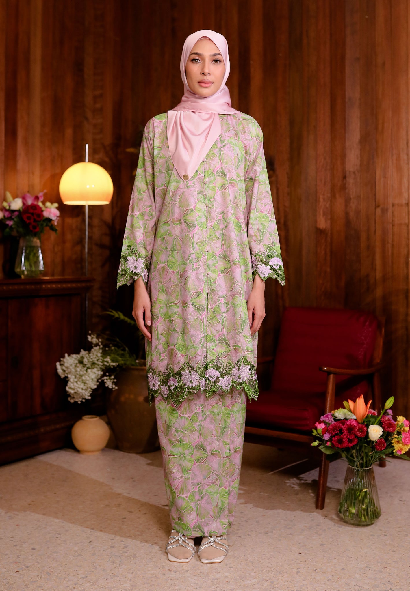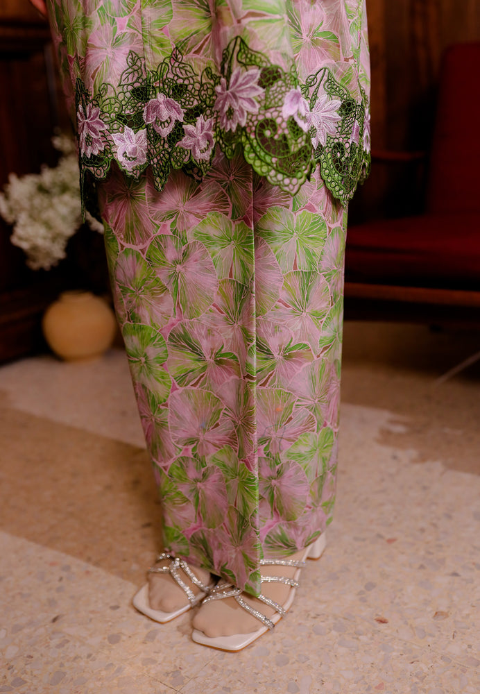 - A pleated skirt with soft folds at the front (lipat batik), creating a flowy and elegant look