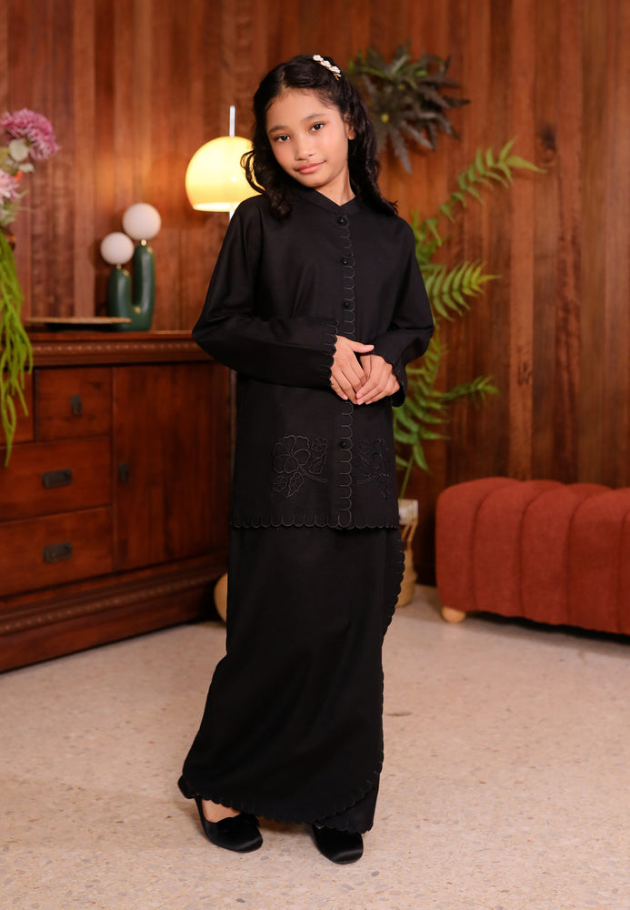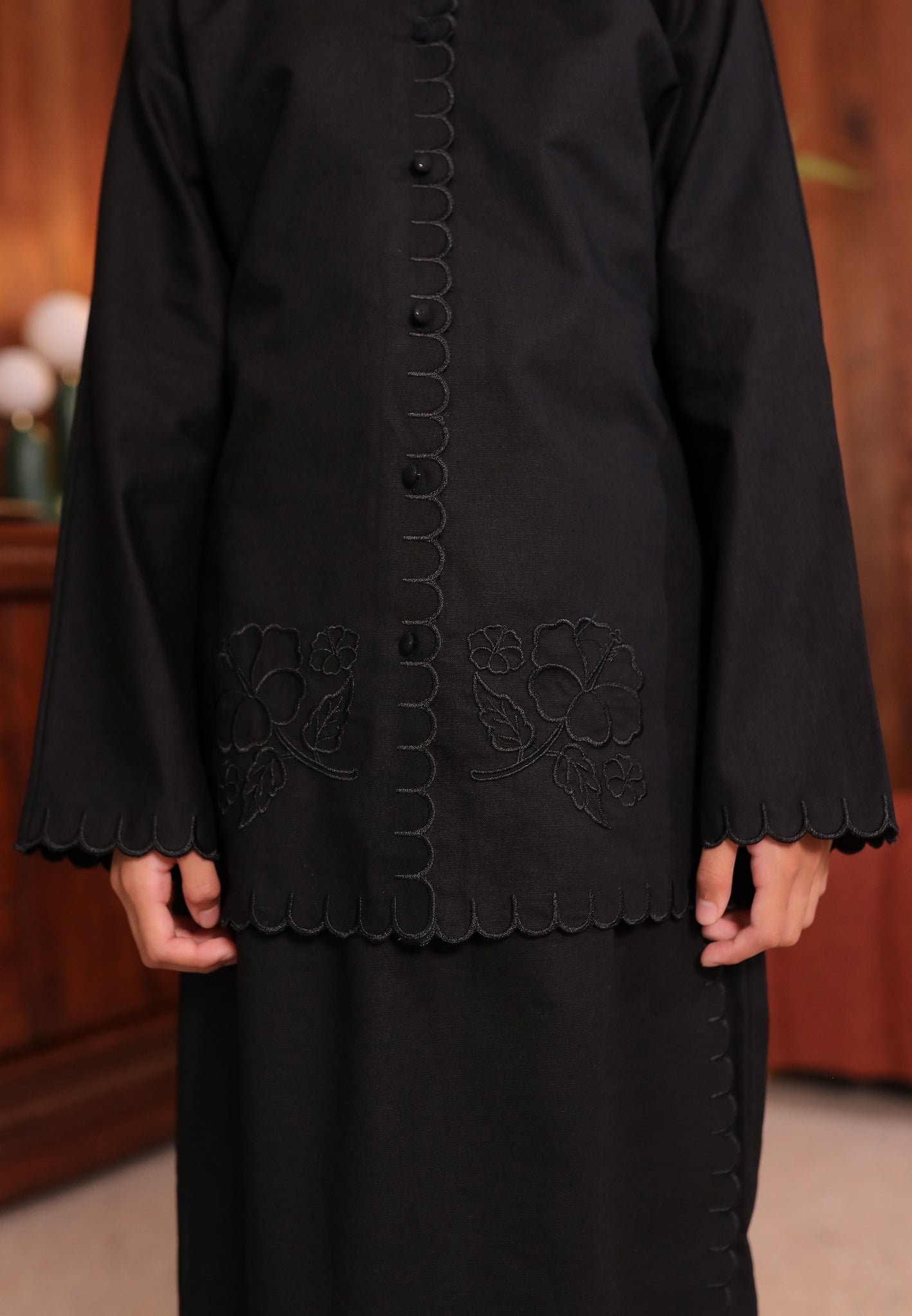 - A pleated skirt with soft folds at the front (lipat batik), creating a flowy and elegant look