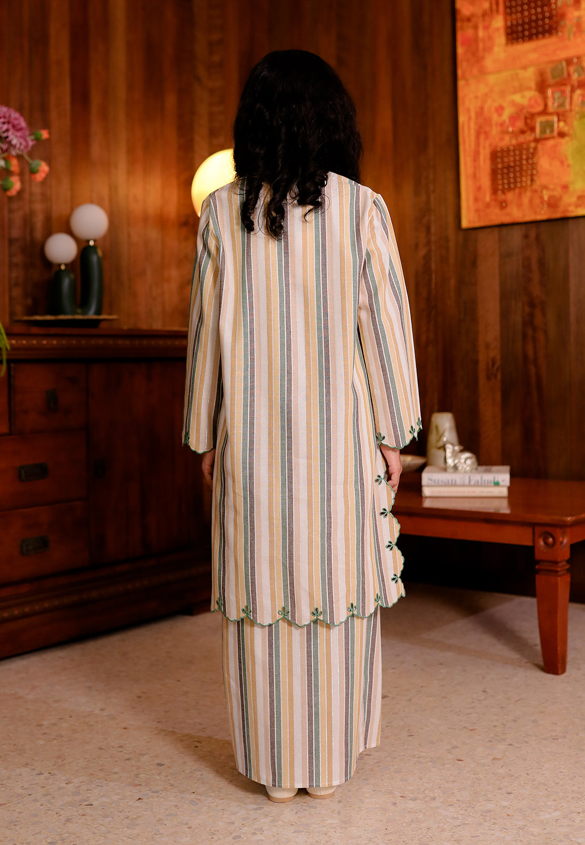 • A pleated skirt with soft folds at the front (lipat batik), creating a flowy and elegant look