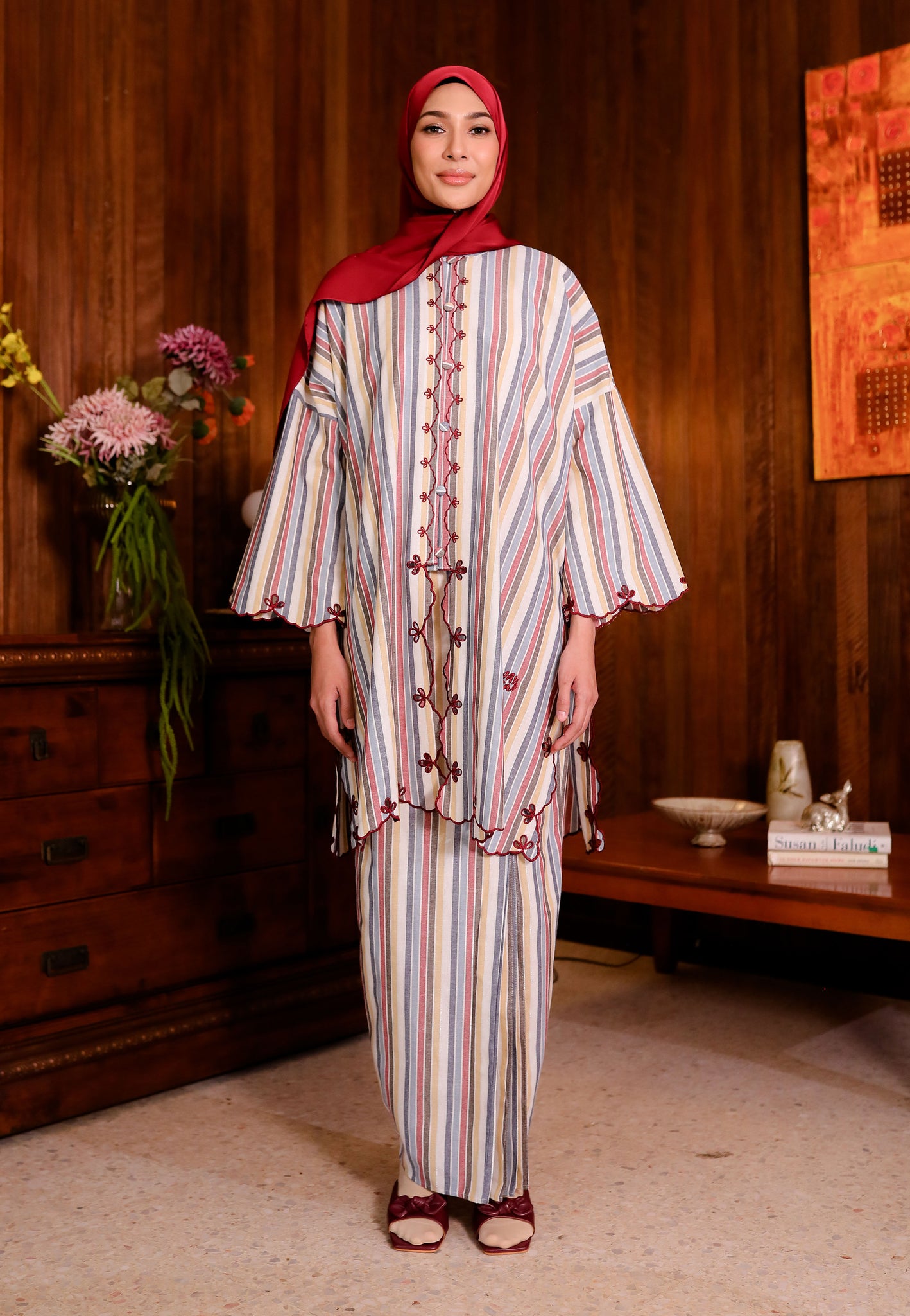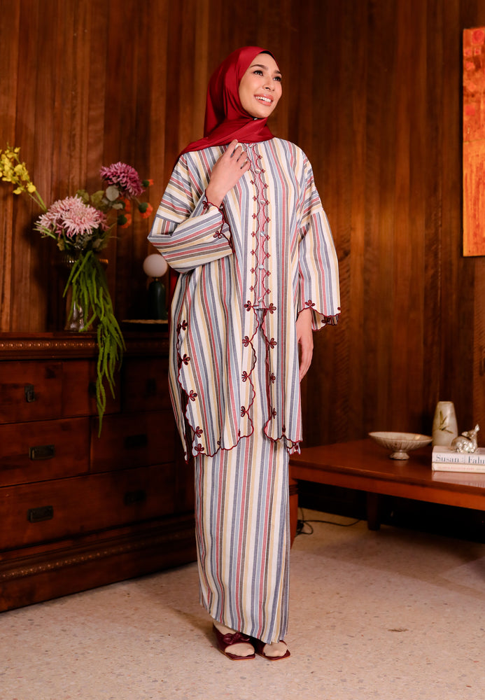 - A pleated skirt with soft folds at the front (lipat batik), creating a flowy and elegant look