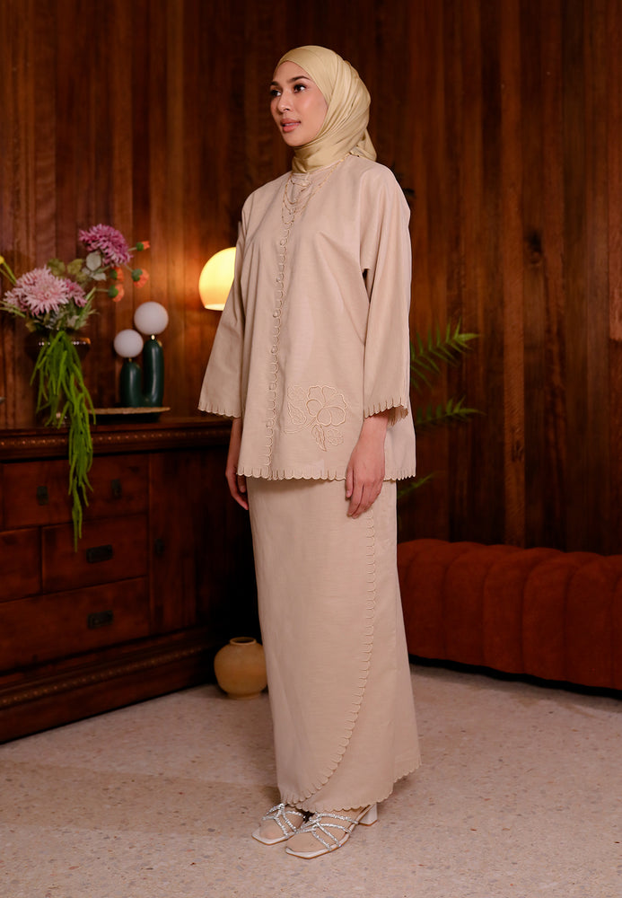 • A pleated skirt with soft folds at the front (lipat batik), creating a flowy and elegant look