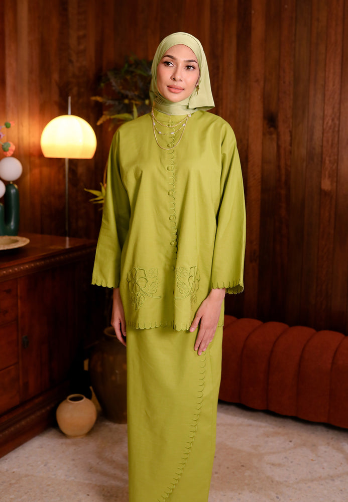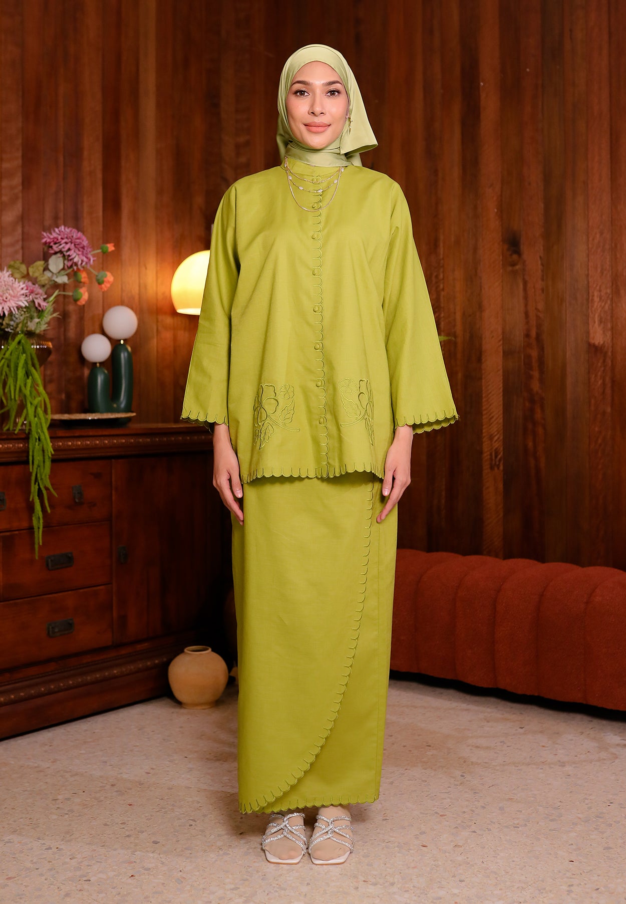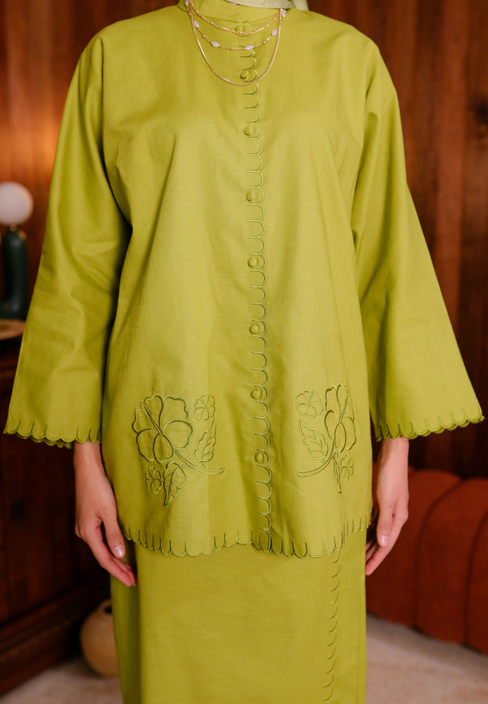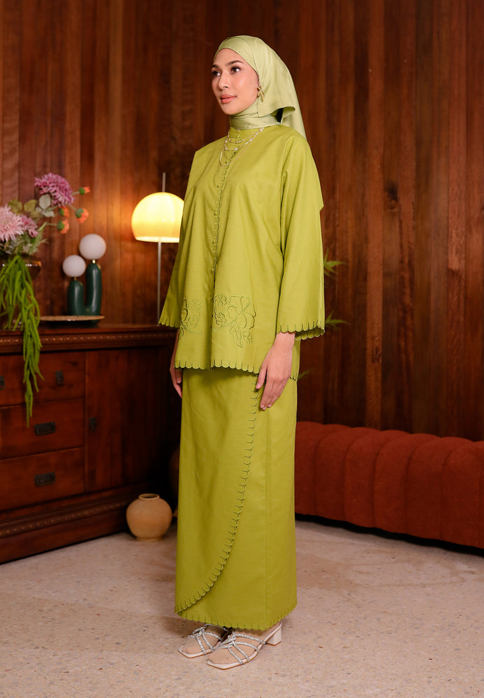 • A pleated skirt with soft folds at the front (lipat batik), creating a flowy and elegant look
